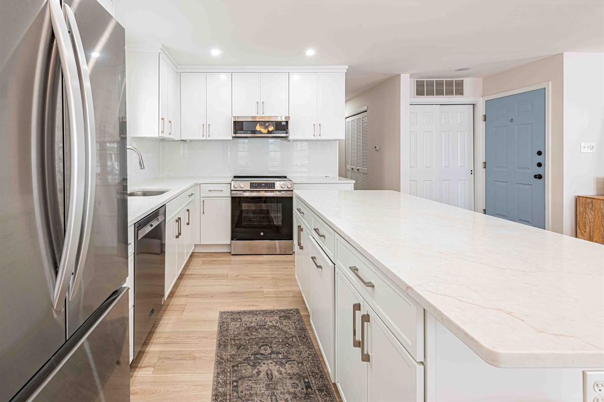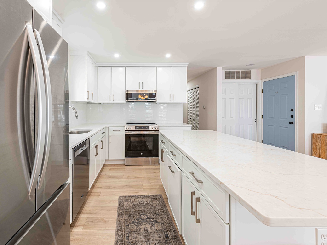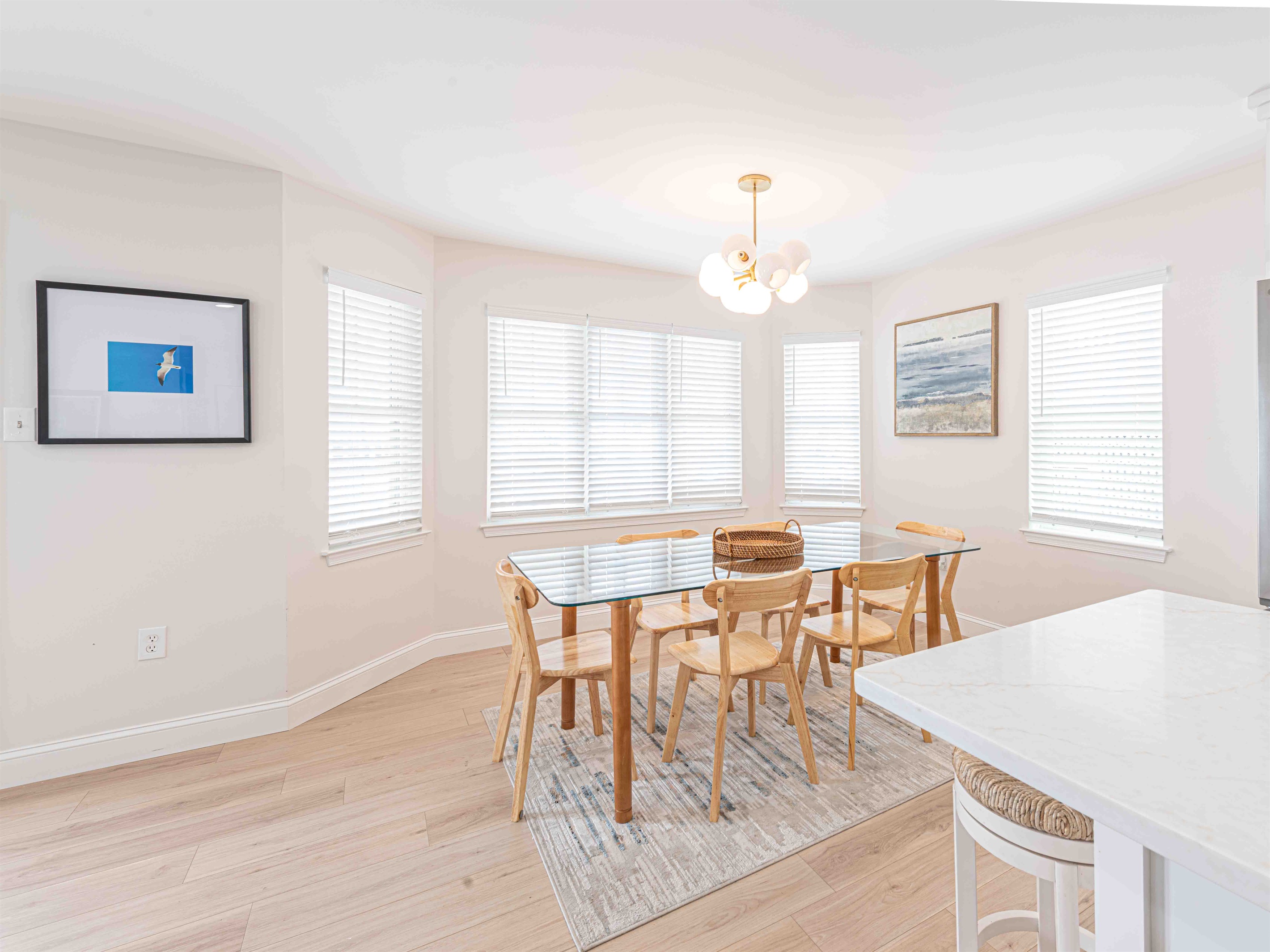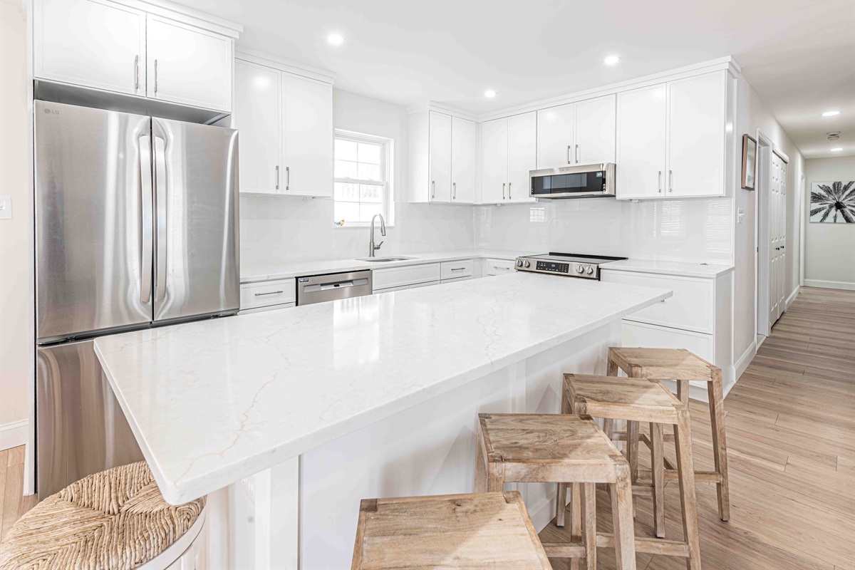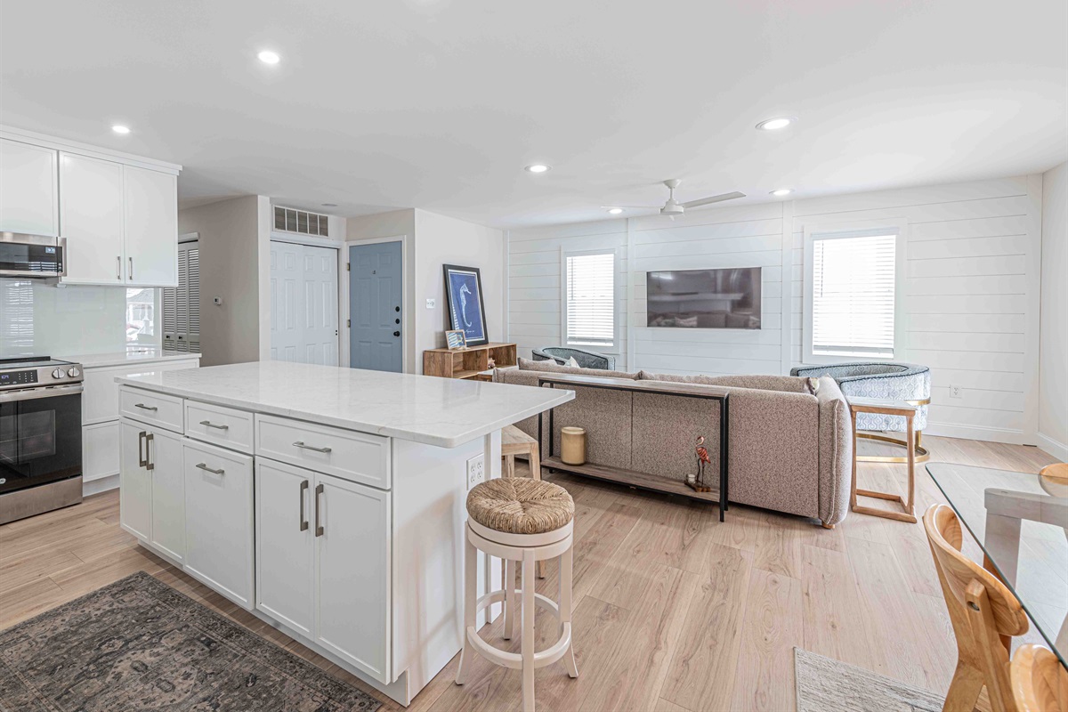 Recently updated with high-end finishes, this 3-bedroom, 2-bath home blends modern comfort with classic shore charm. The open-concept living space features stylish flooring, a gourmet kitchen with quartz countertops, and a large center island—perfect for morning coffee or post-beach gatherings.