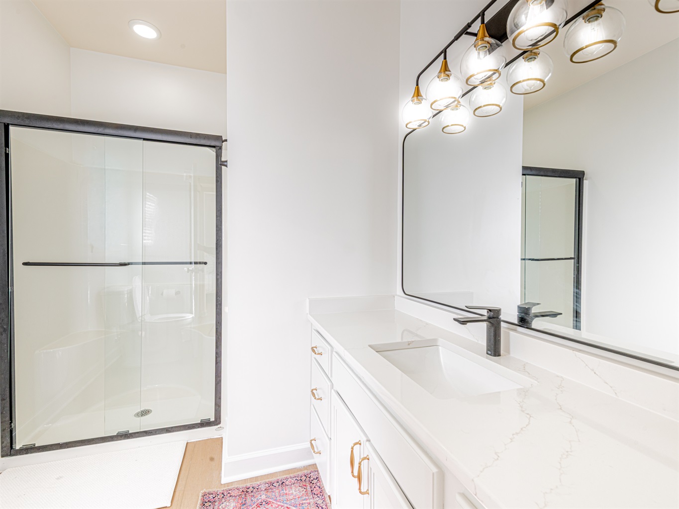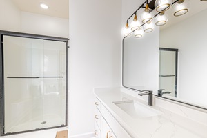 - Bedroom 1: King bed + private ensuite bathroom (walk-in shower)