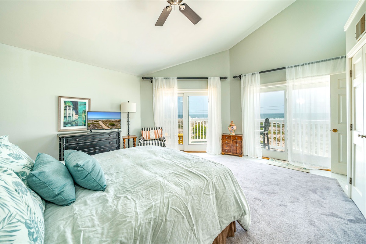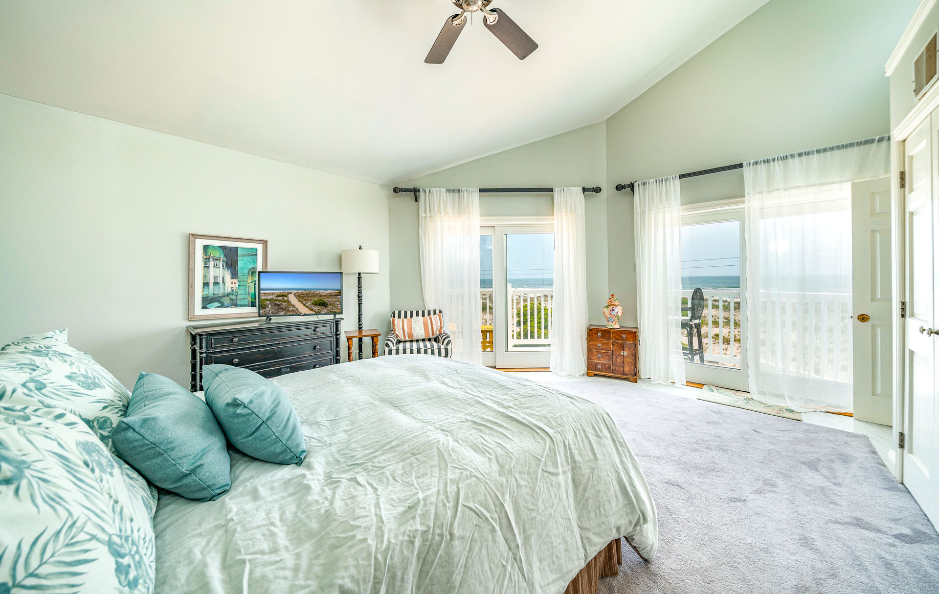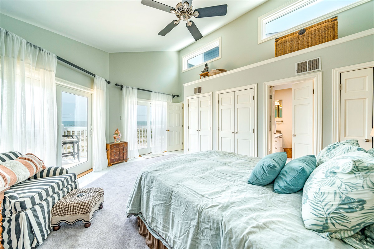 BR 3: Queen suite (third floor) w/ ensuite full bath + walk-in spa shower + ocean views + Smart TV