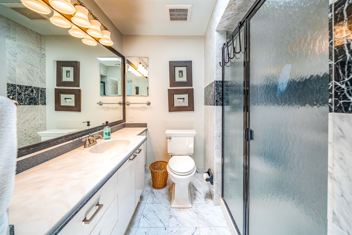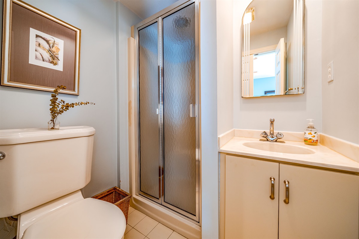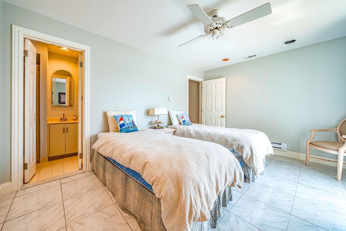 BR 1: Two twin beds (ground level) w/ ensuite full bath + walk-in shower