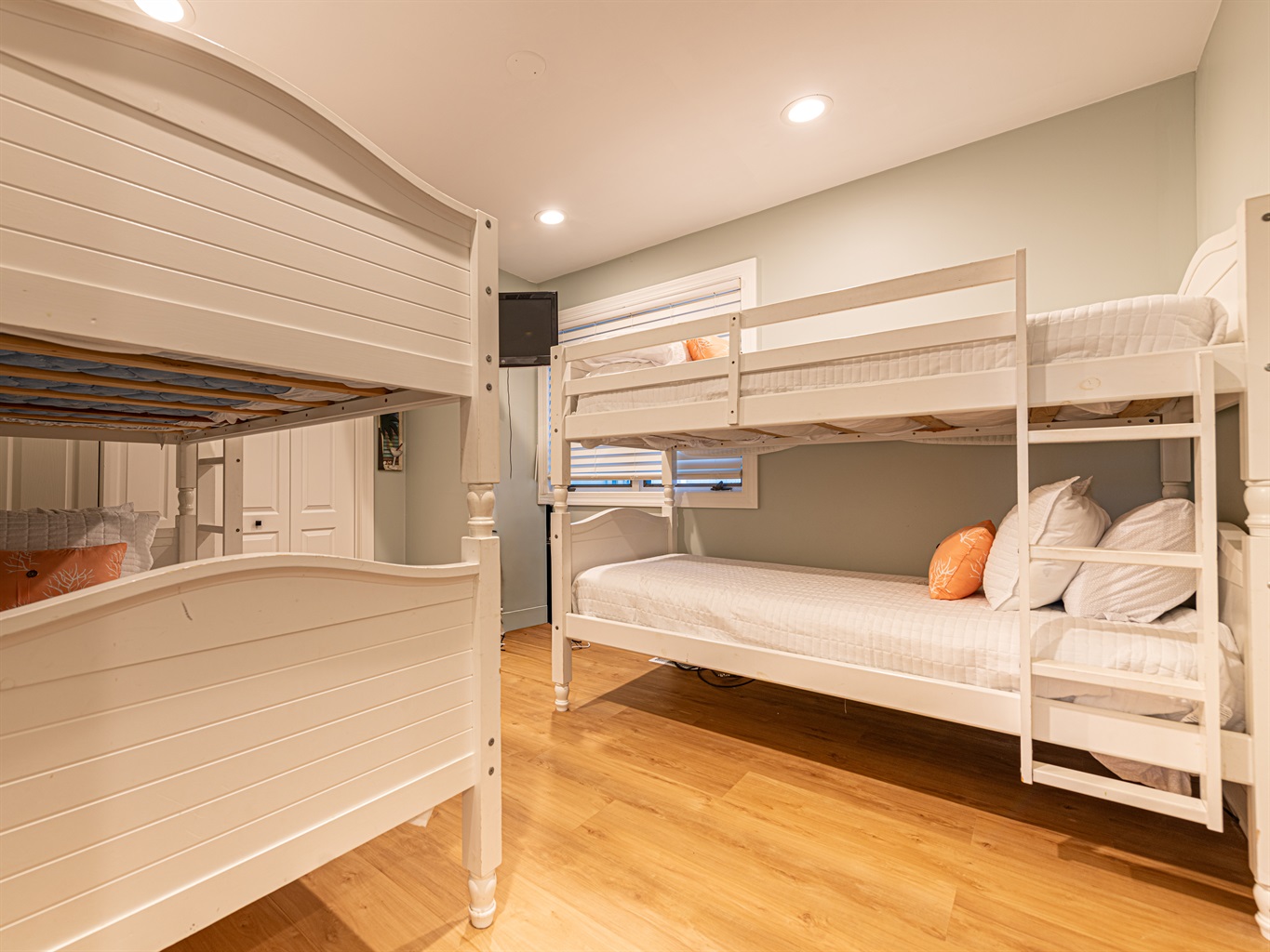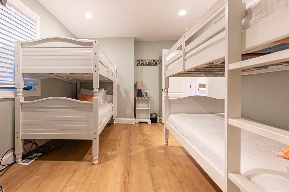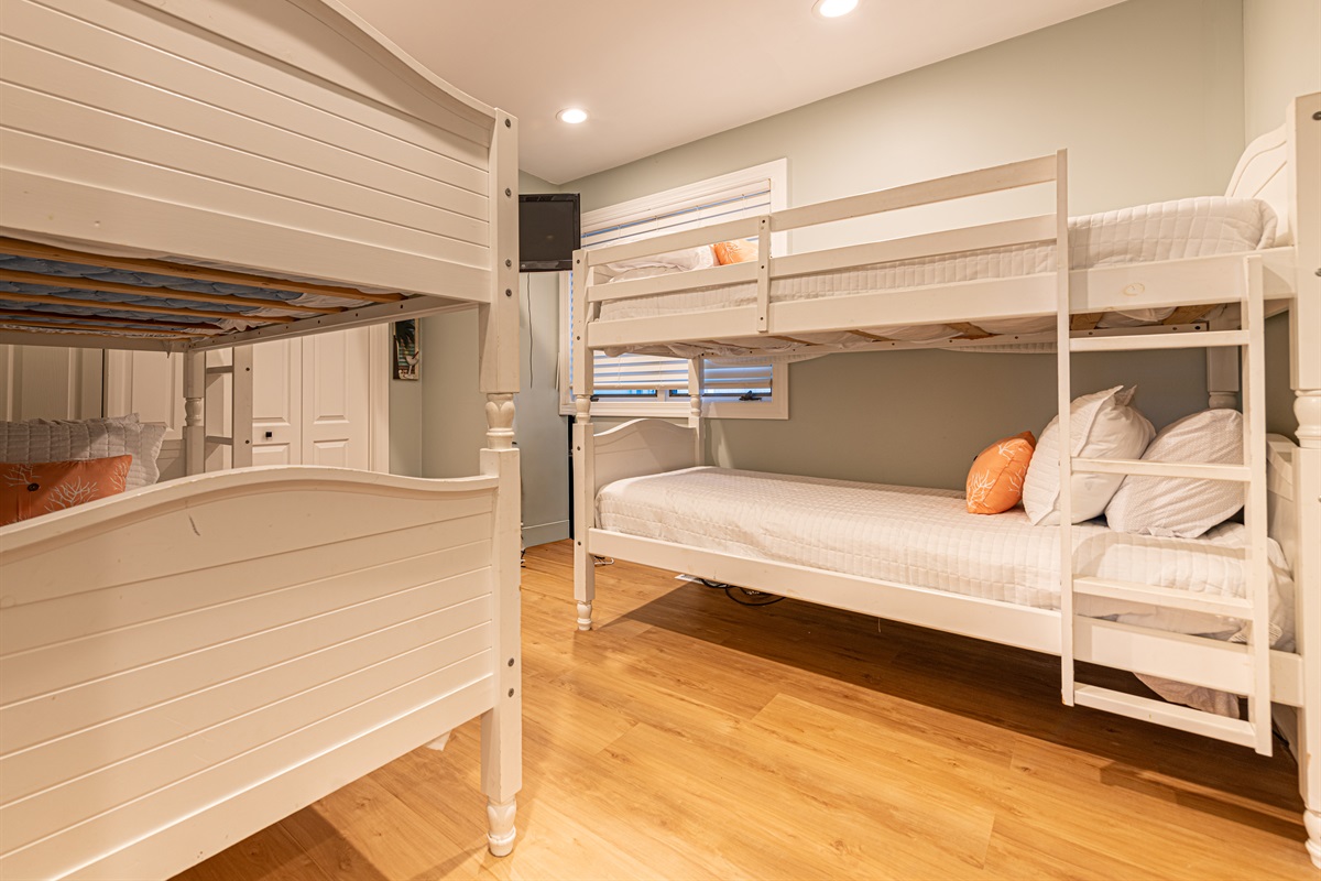 BR 1: Two twin bunks + 1 twin cot (sleeps 5)