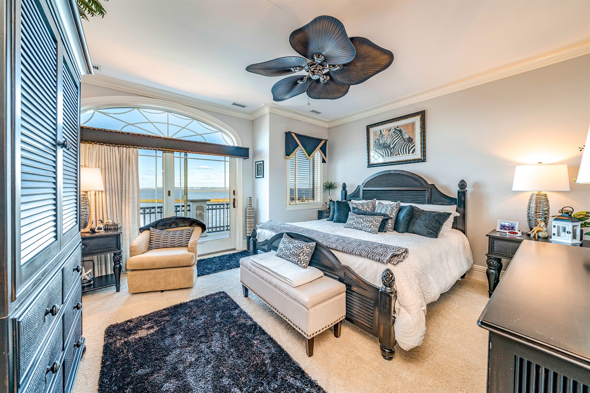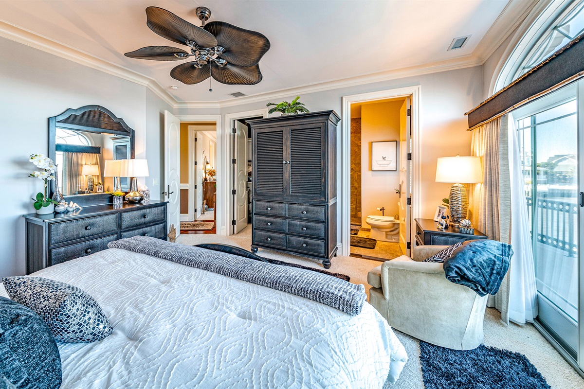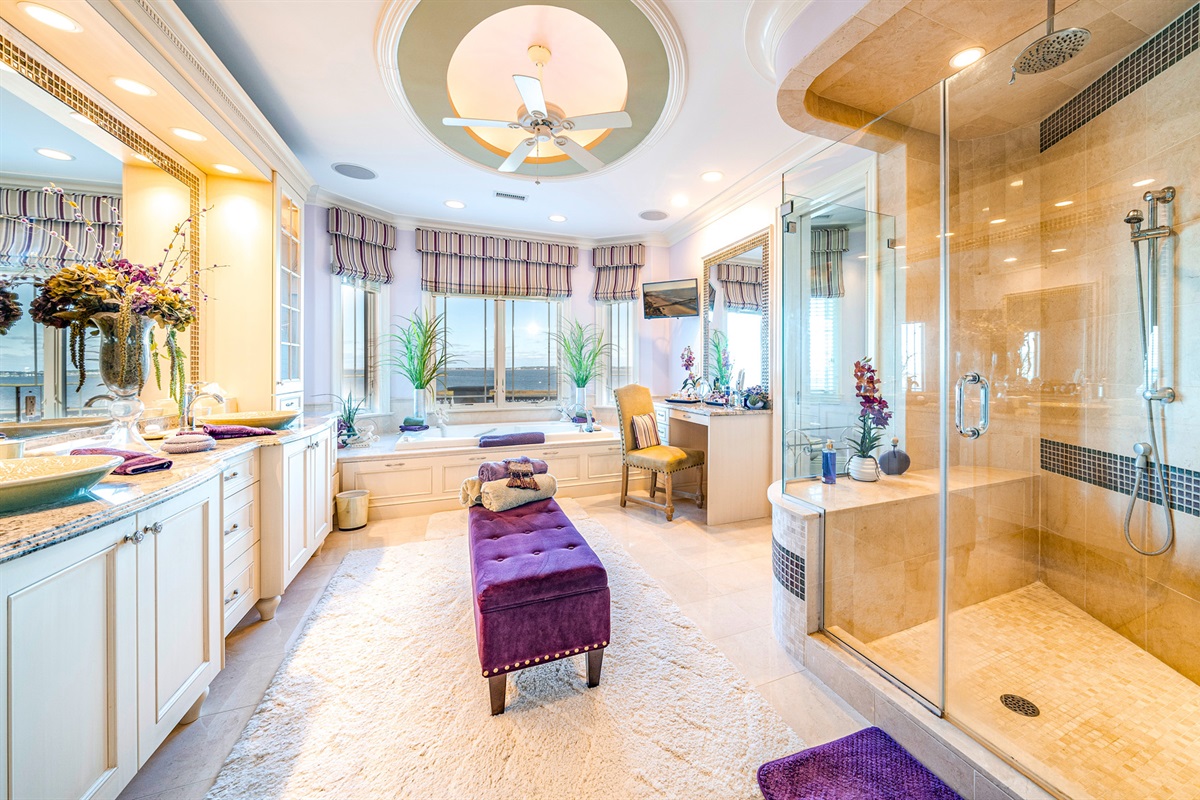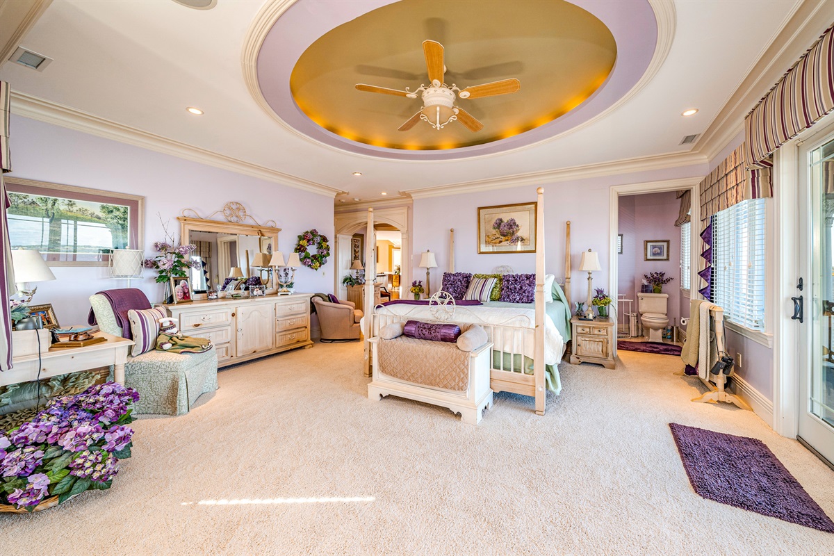 Private master suite w/ two dressing rooms, spa bath, soaking tub & bay views
