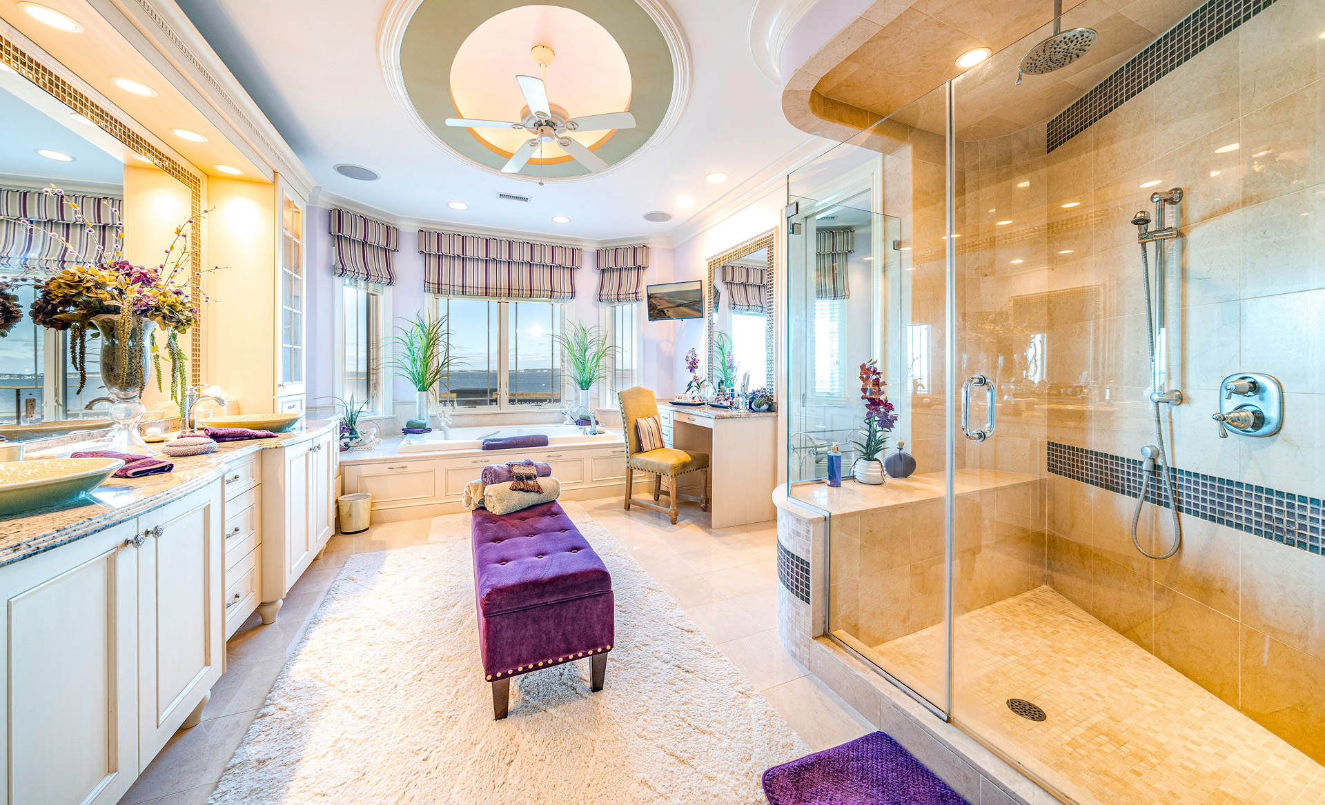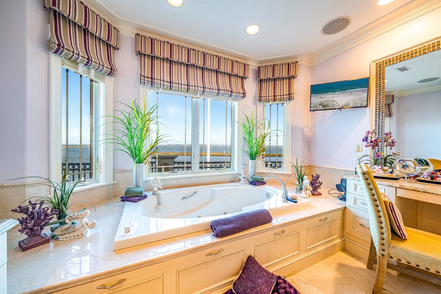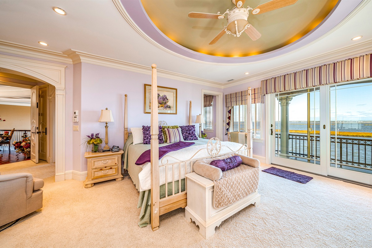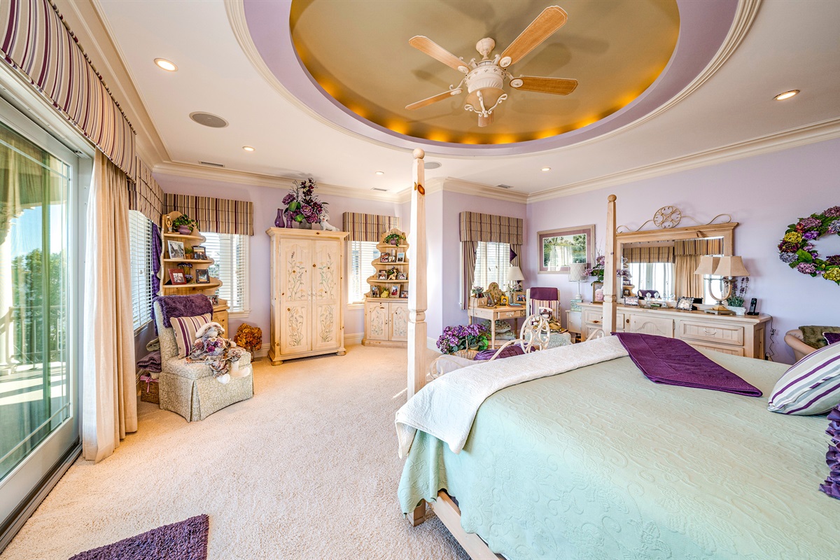 Private master suite w/ two dressing rooms, spa bath, soaking tub & bay views