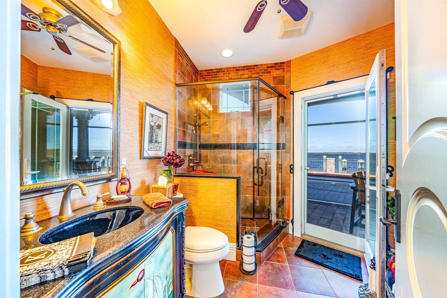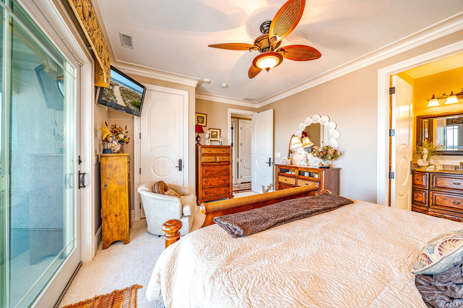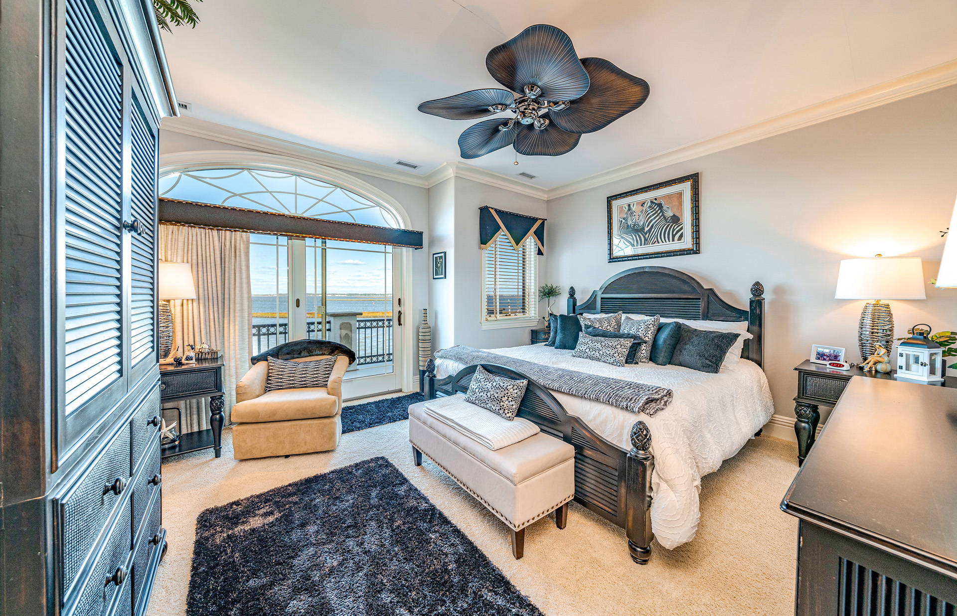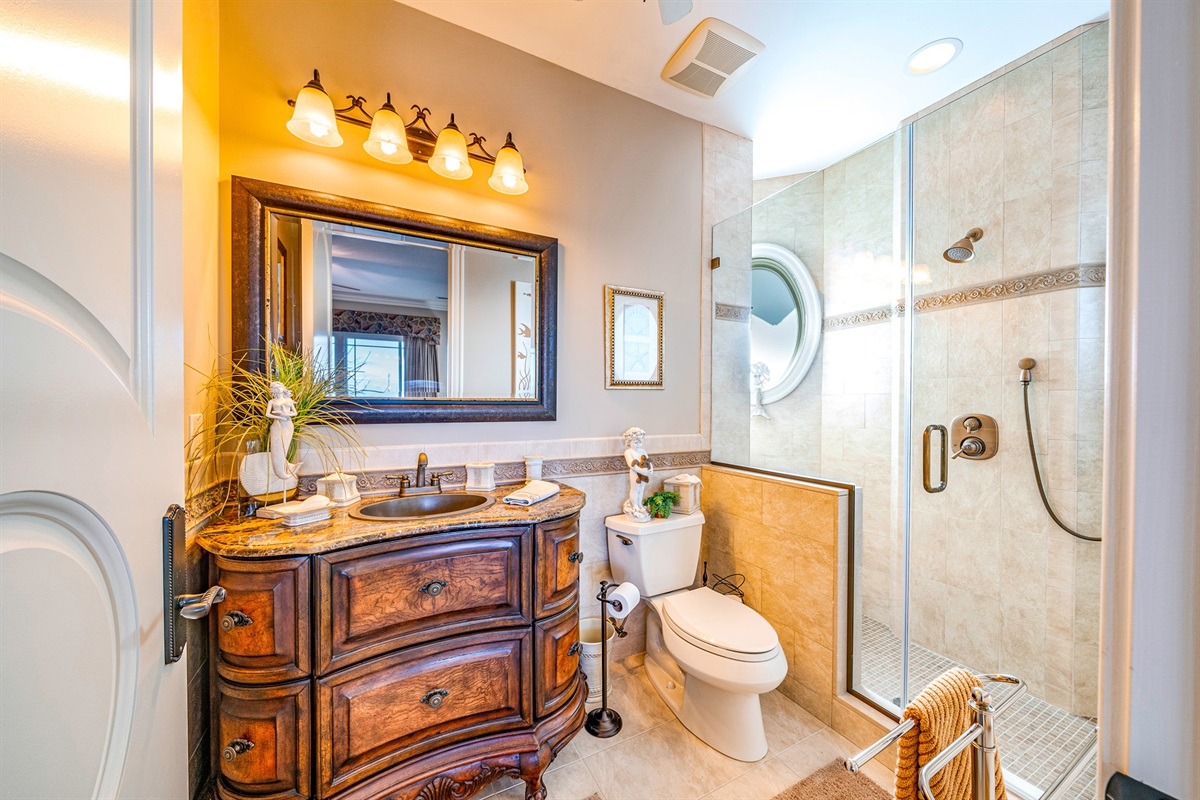 Private master suite w/ two dressing rooms, spa bath, soaking tub & bay views