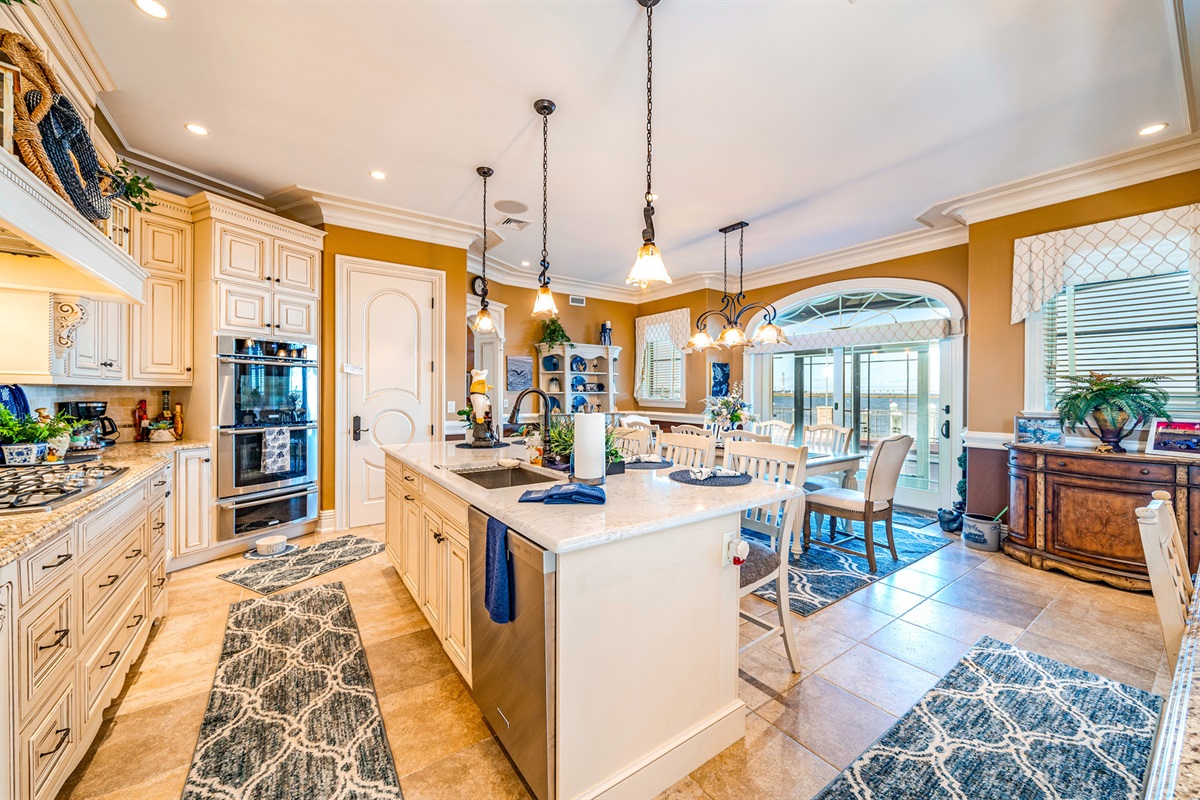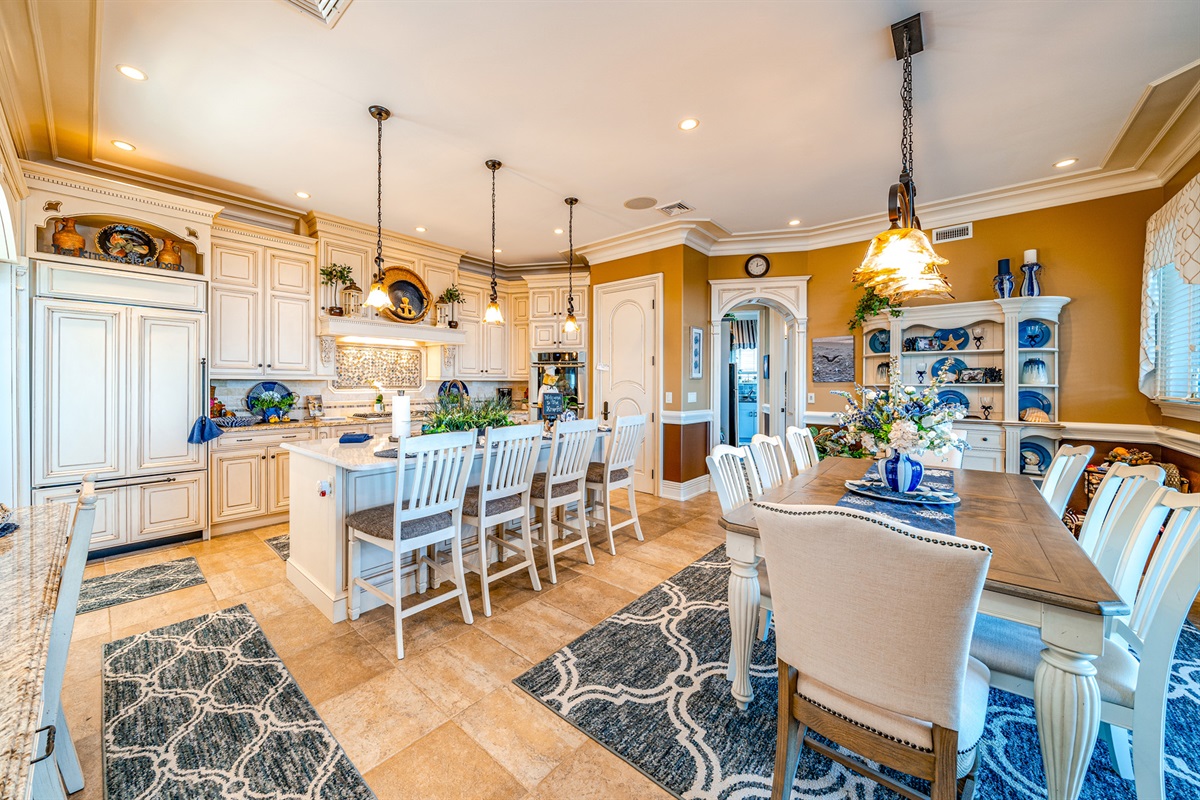 Chef’s kitchen w/ custom cabinetry & top-tier appliances