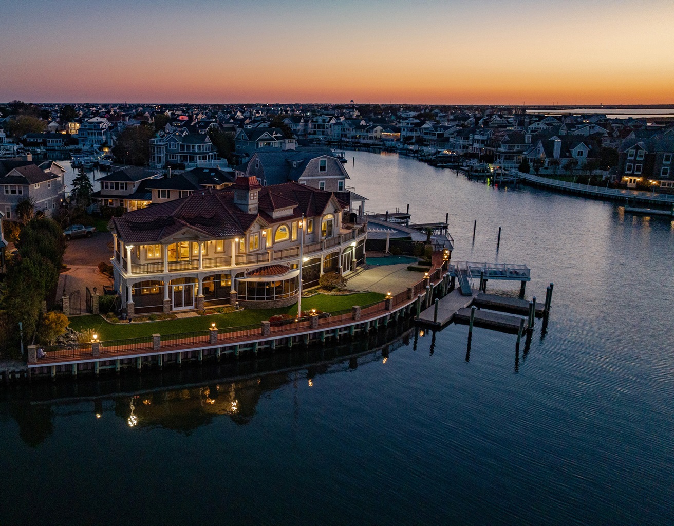 Welcome to The Bayshore Estate of Ocean City, where luxury meets the water’s edge. Set on one of South Jersey’s most coveted bayfront lots, this spectacular custom-built estate offers over 200 feet of open bay frontage with sweeping 180° panoramic views—the kind that leave you breathless as the sun sets in a blaze of gold and fire.