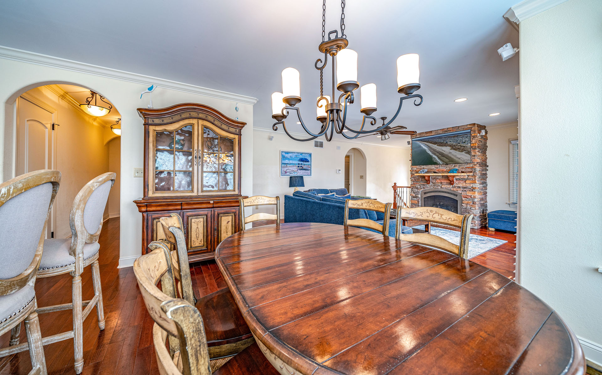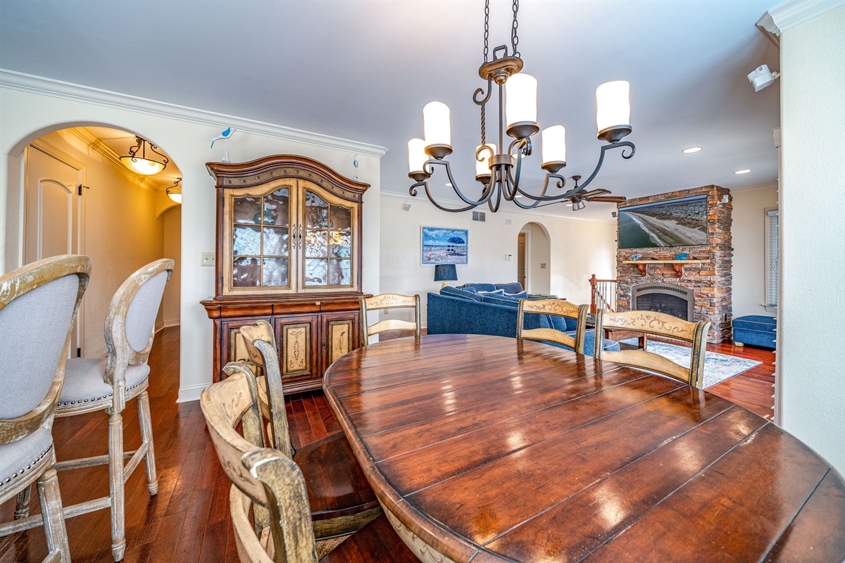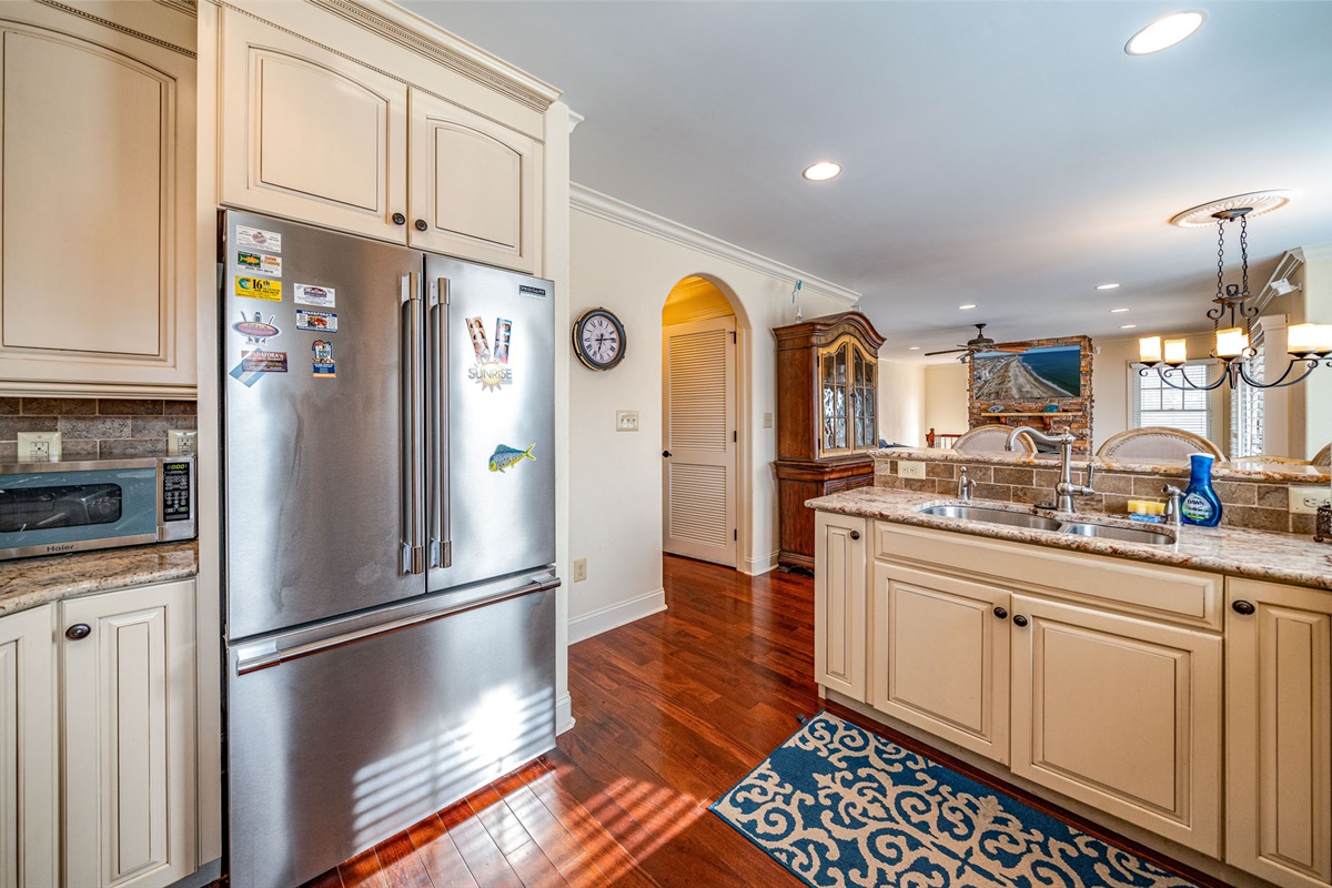Brazilian hardwood floors, crown molding, granite countertops, tiled backsplash