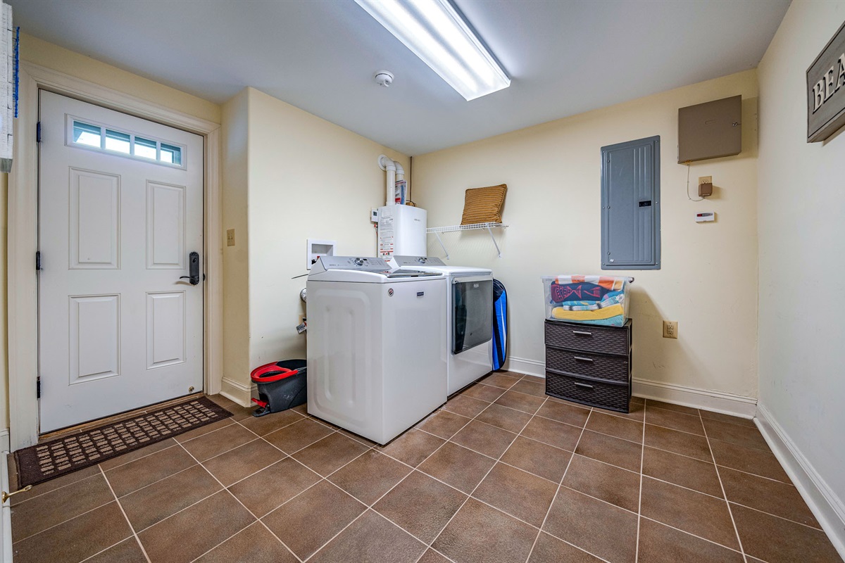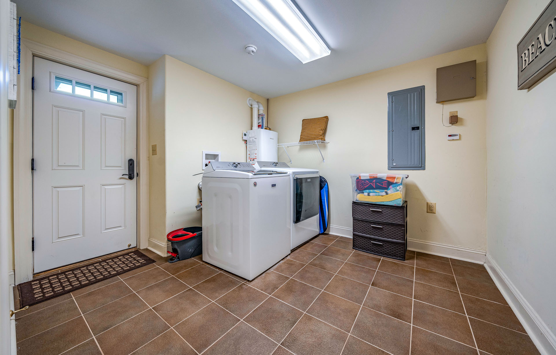 Two washers + dryers (one inside, one ground-level for wet towels/suits)