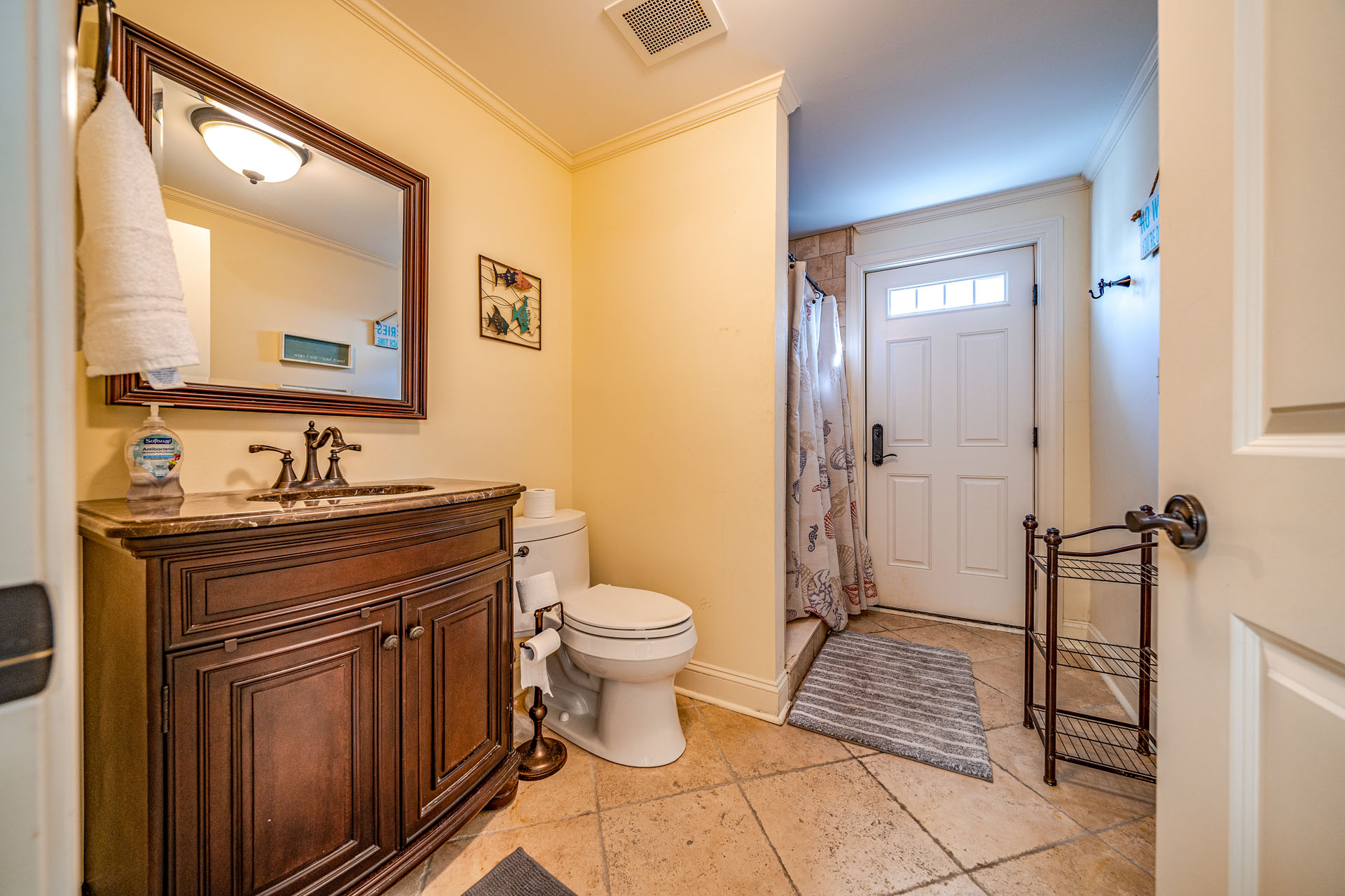 Outdoor shower + ground-level bath for rinsing off after the beach
