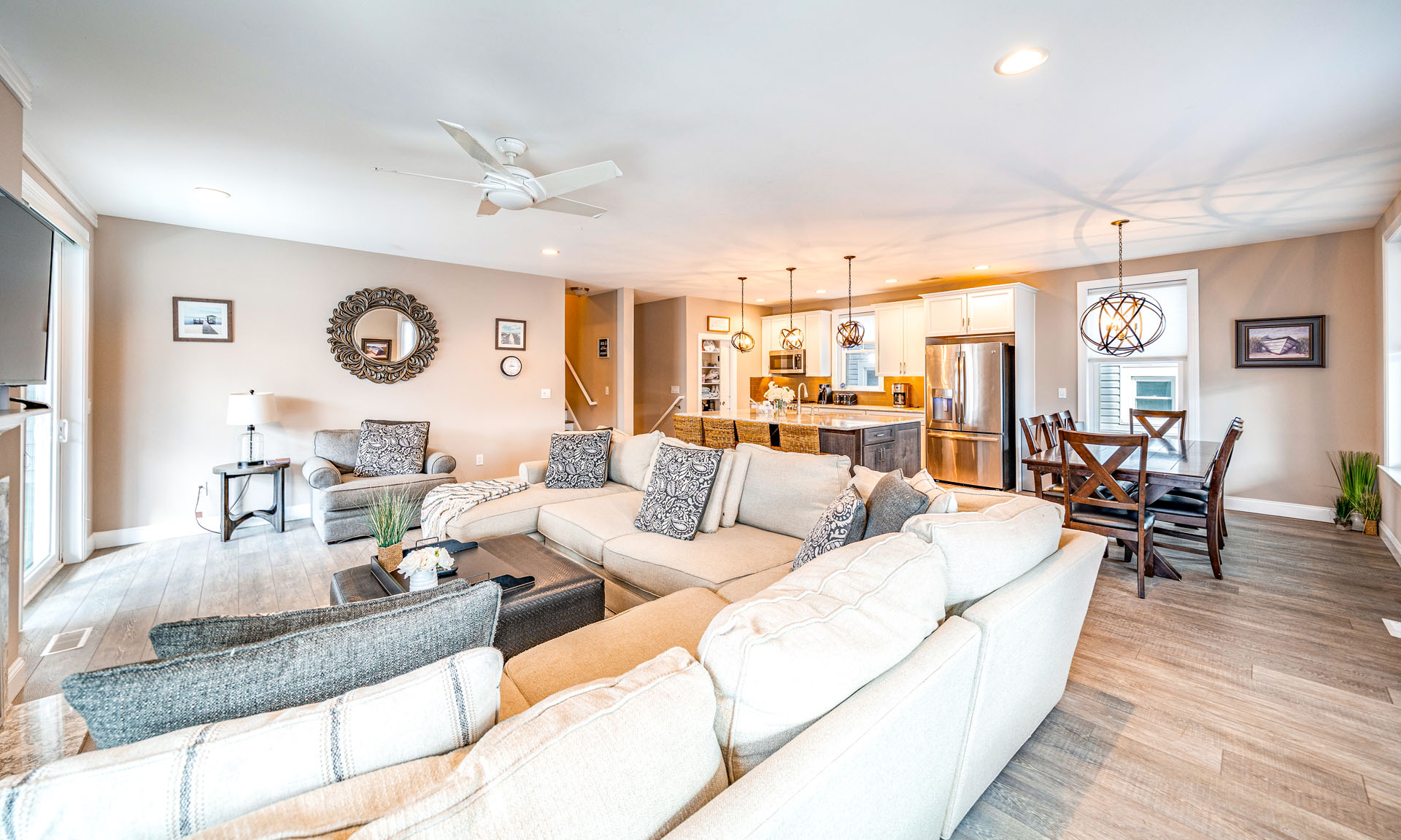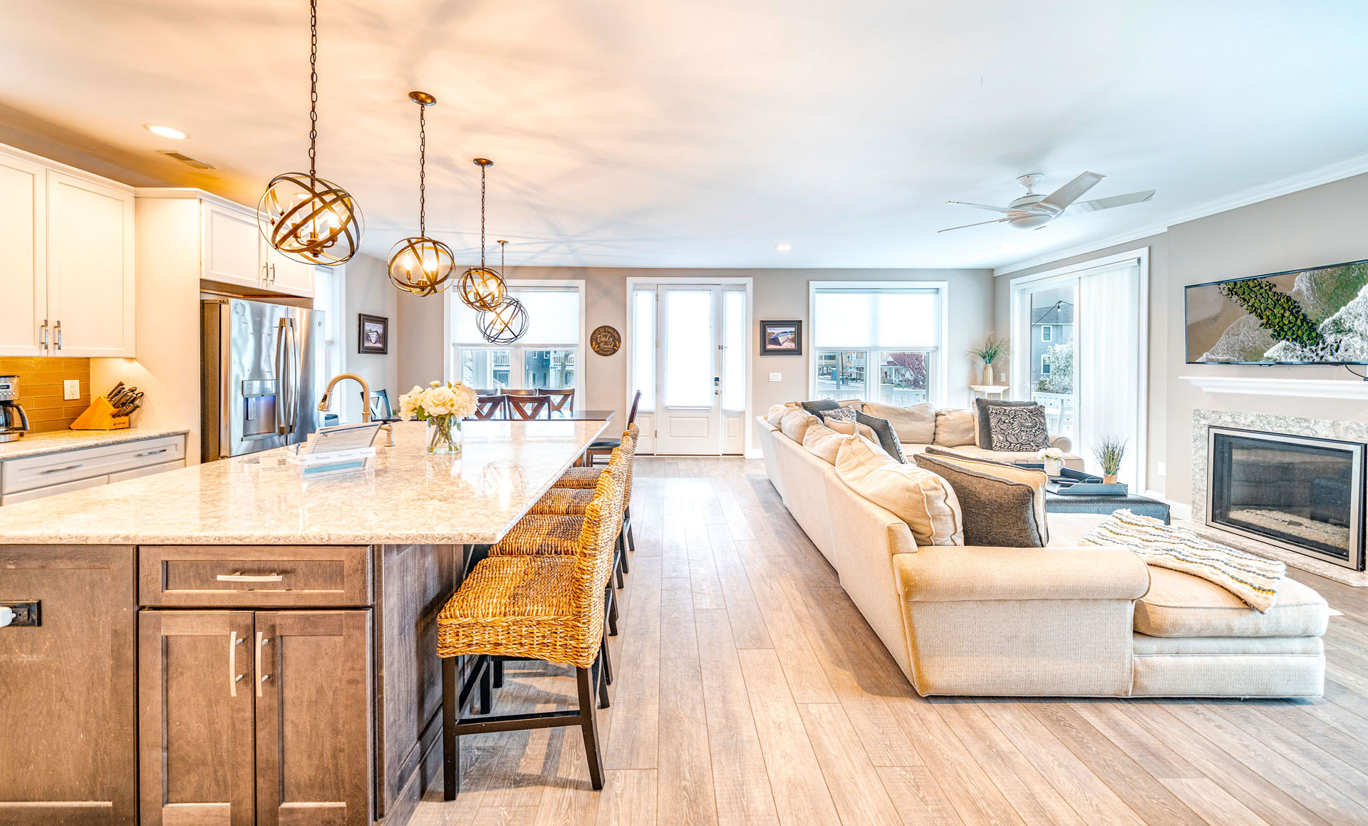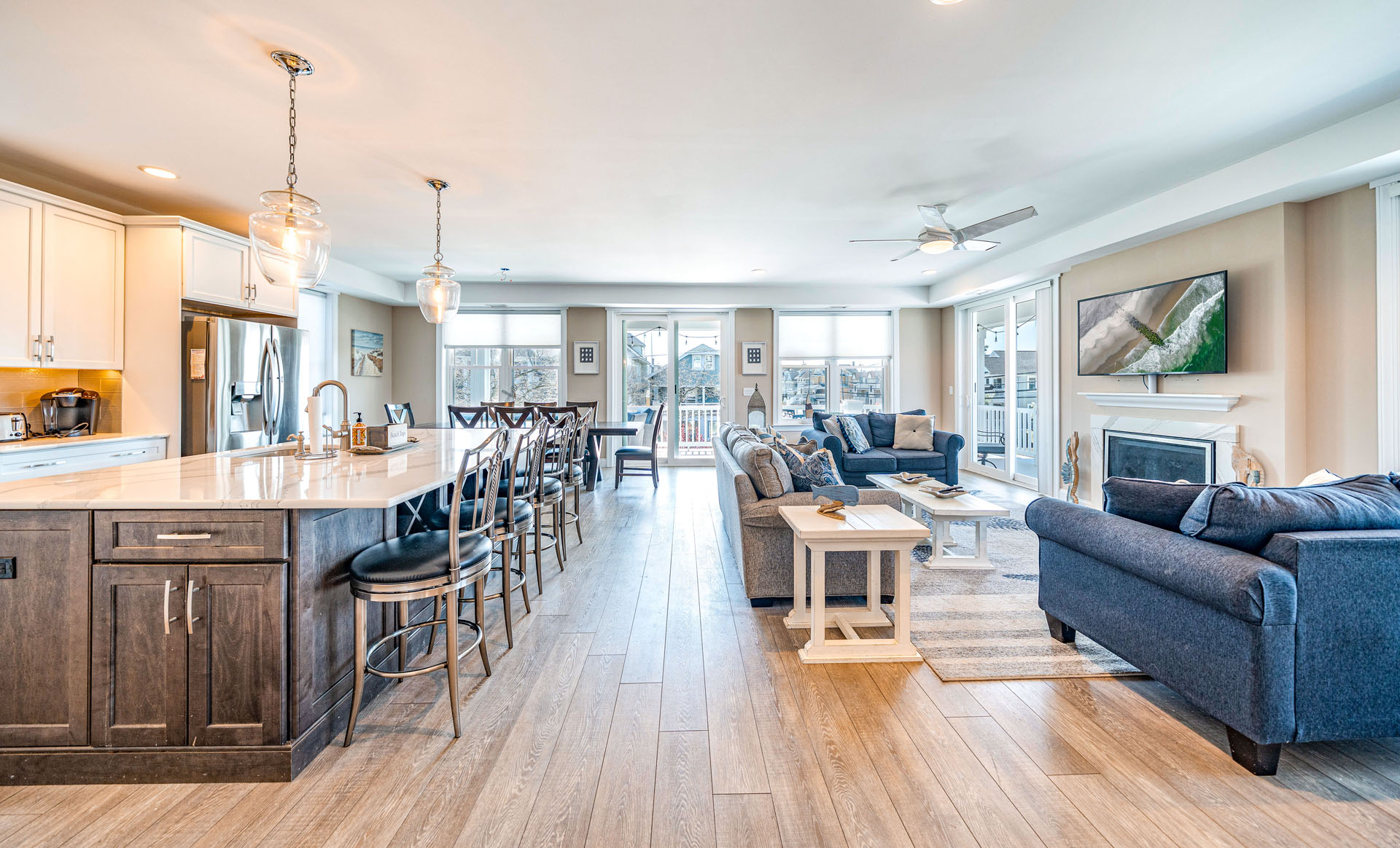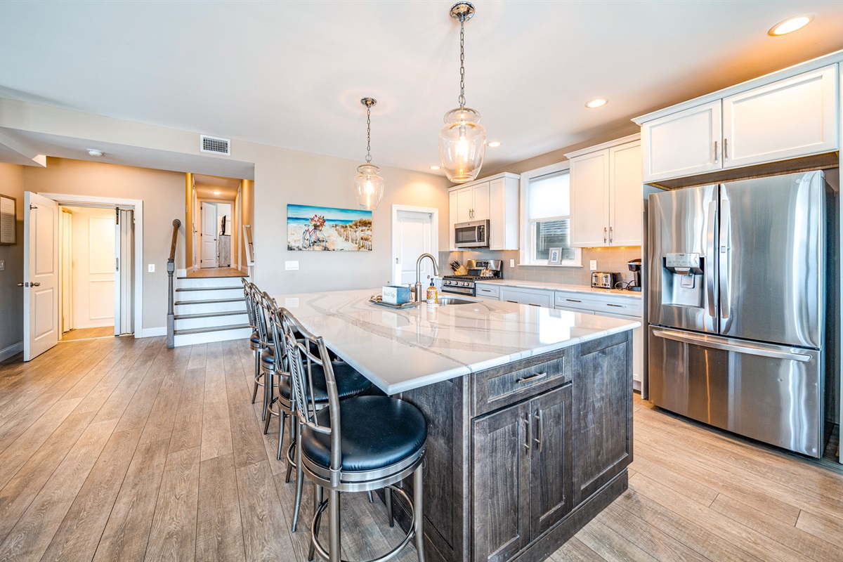 Two fully equipped kitchens w/ premium appliances, large islands & dining areas