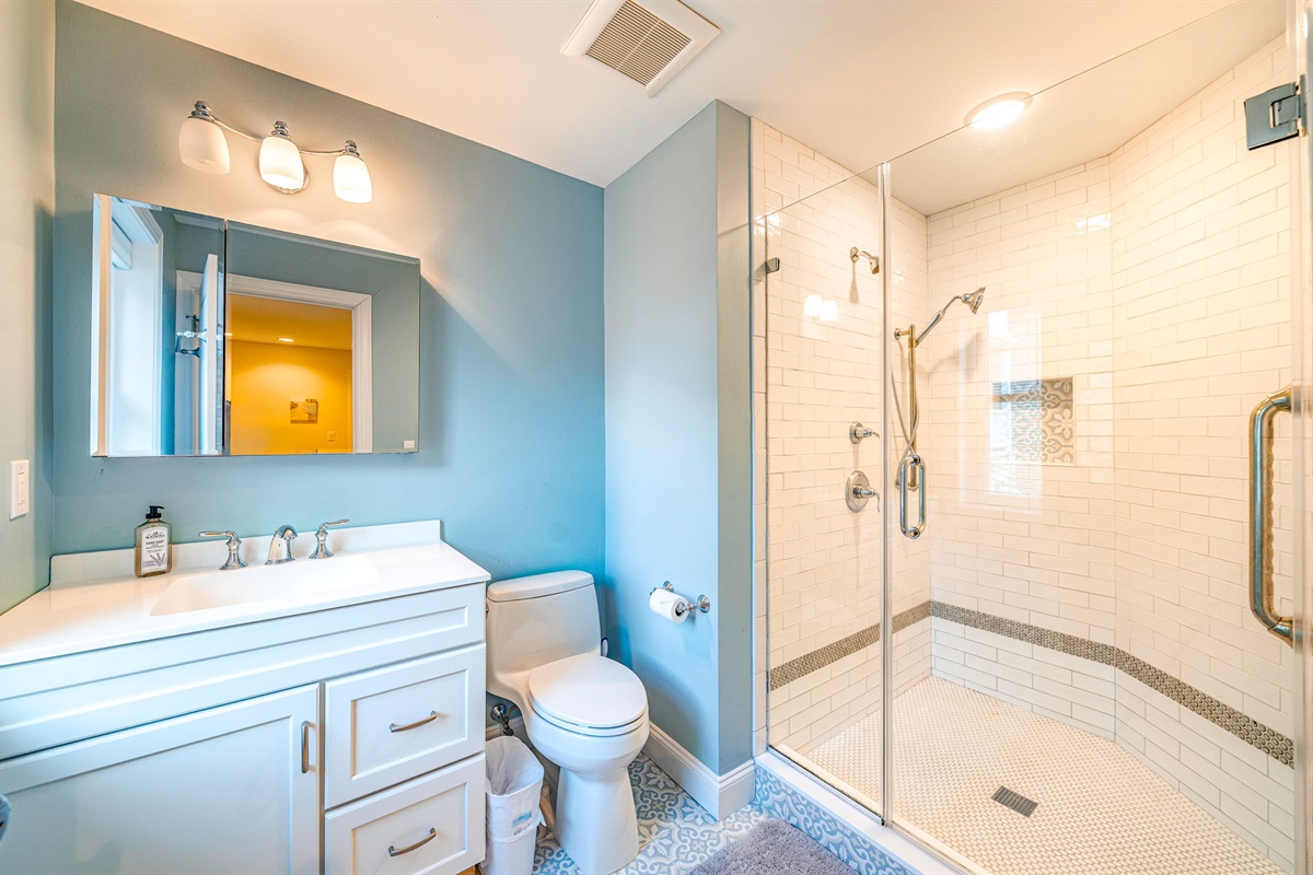 Enclosed outdoor shower + ample off-street parking