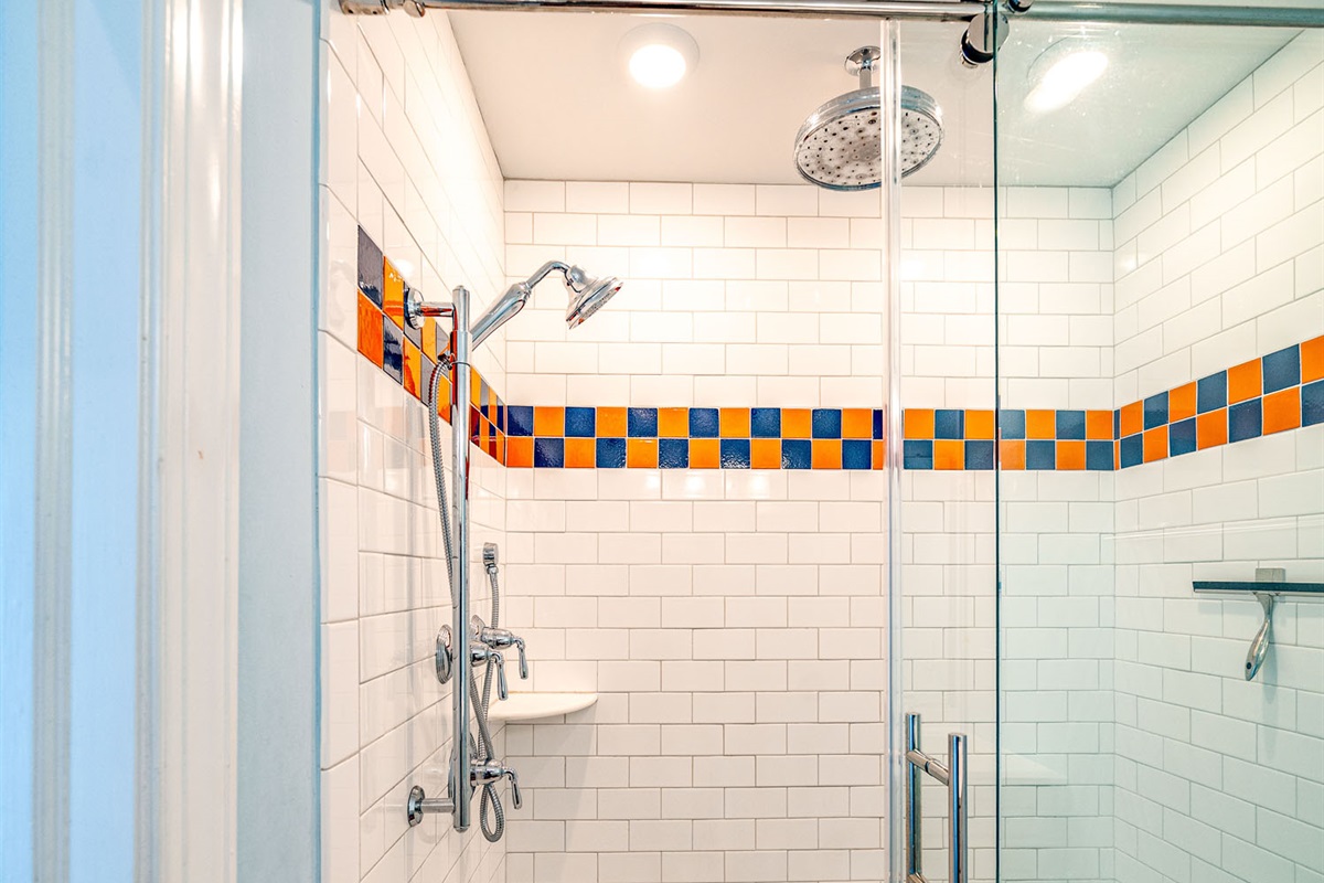 Enclosed outdoor shower + washer/dryer for beach convenience